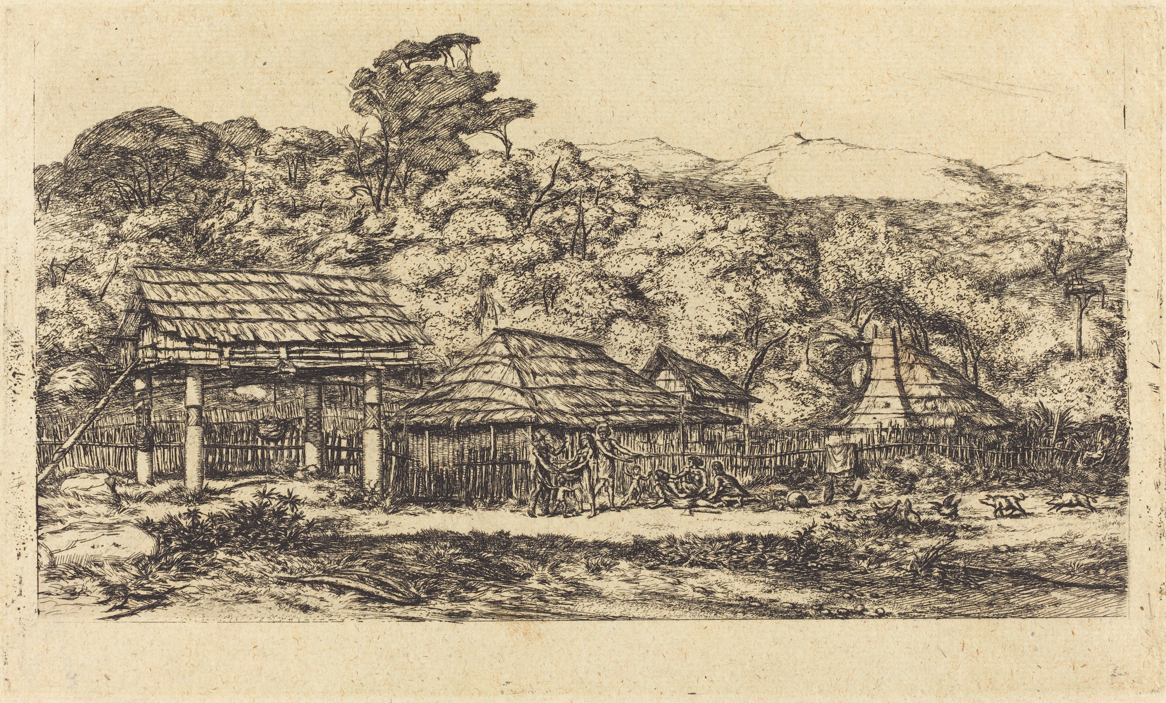 Here is that etching, whose French name in the plaque, translated into English, means ‘Colliers’ Point,’ charbonniers, or colliers, being people who deal with coal or charcoal. I can’t find it on any maps these days. The longer version of the name of the scene describes the activity of purse seine (net) fishing at Pointe dite des Charbonniers, with several figures hauling on the net-rope at the left of the picture.